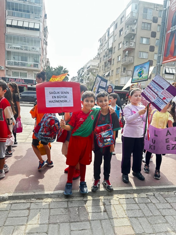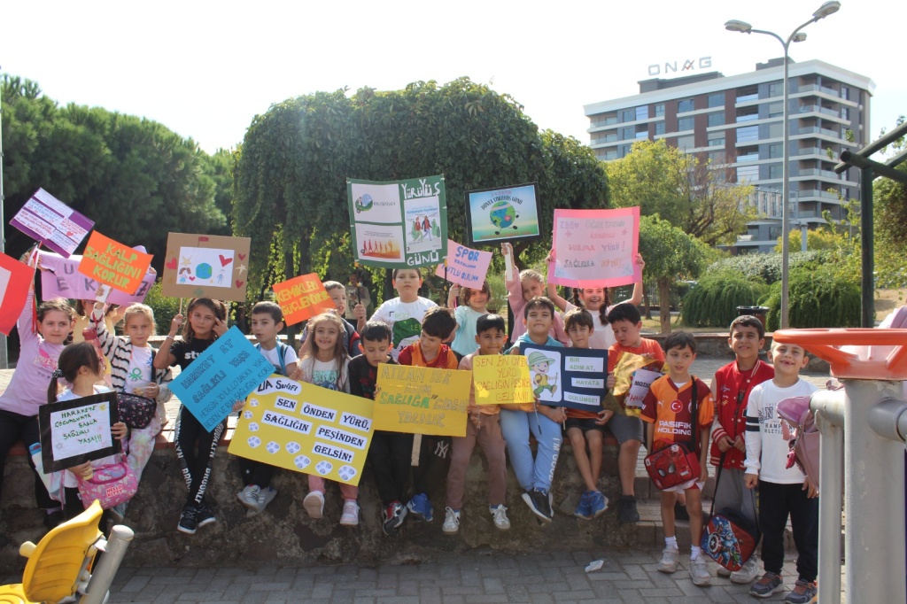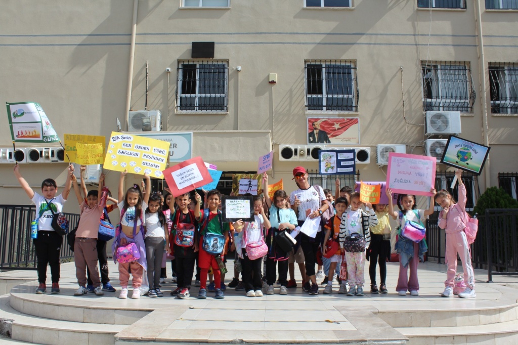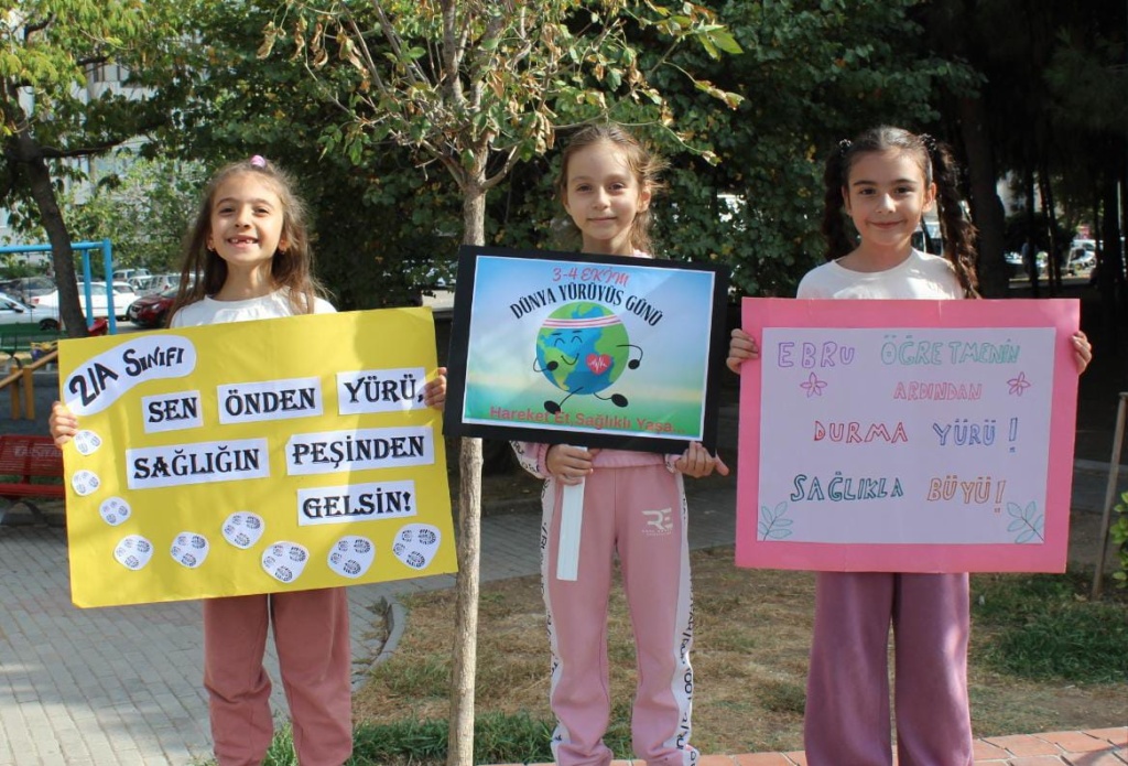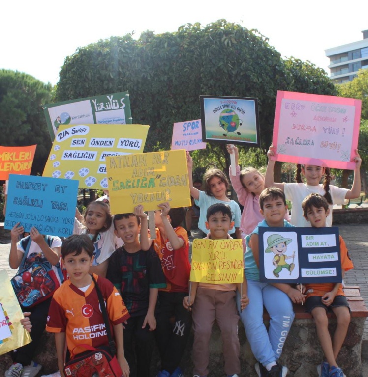 2-A sınıfı öğrencileri, okulumuzda yürütülen Hareketli Sağlıklı Yaşam projesi kapsamında 3-4 Ekim Dünya Yürüyüş Gününe hazırladıkları etkinlikle katıldılar. Yürüyüşün sağlıklı yaşam için önemine dikkat çekmek isteyen öğrencilerimiz hazırladıkları pankartlarla, okulumuz cevresinde bulunan Çamlık yürüyüş parkurunda yürüyüşlerini yapıp konuya dikkat çektiler. Yürüyüşün ardından ısınma egzersizleri yapıp, sağlıklı yiyeceklerle beslenme saatlerini açık havada yapmanın keyfini yaşadılar.